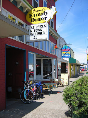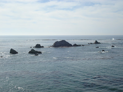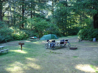 Wir sind gestern Nachmittag in Brookings angekommen, dem letzten grösseren Ort vor der Grenze nach Kalifornien. Da unsere Velocomputer inzwischen mehr als 1000 km anzeigen, ist es höchste Zeit für einen Ruhetag. Den hier zu verbringen ist besonders praktisch, denn in der Nähe des Campgrounds können wir einkaufen und essen. Zudem befinden wir uns direkt am Meer und verfügen hier über die notwendige Infrastruktur (inkl. Laundry und Wifi). Auch das Wetter zeigt sich von der schönsten Seite. - Gestern konnten wir übrigens erstmals eine ganze Tagesetappe mit sehr kräftigem Rückenwind zurücklegen. Wir hoffen, dass uns dieselbem Winde auf den kommenden 2/3eln er Gesamtstrecke hin und wieder begleiten. Es lässt sich so sogar uphill gut pedalen.