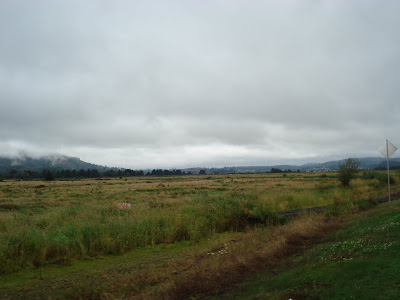 Auf Abschnitten, wo die Strasse weiter weg von der Küste verläuft, wirkt die Landschaft wie ausgewechselt. Da kommt man plötzlich durch hügeliges Farmland, das in seiner Topographie an Jurahöhen erinnert, von der Farbe her aber auch an ausgedörrte Walliser Südhänge (wo nach dem ersten Schnitt nichts nachwächst ohne Bewässerung).