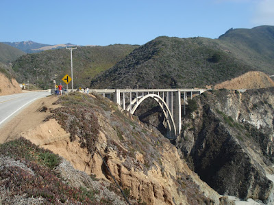 Wir sind hier hineingefahren und sahen uns konfrontiert mit langen Anstiegen, richtigen Kurven und spektakulären Kunstbauten - v.a. aber mit erregenden Blicken hinunter ins klarblaue Meer (seit Monterey ist das Meer unglaublich sauber).