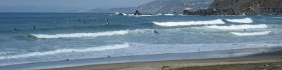 - In Extremkontrast dazu das Feeling des ewigen Sommers an den Stränden und v.a. in deren Rückraum. Das führt zu einer besonderen Atmosphäre des Relaxtseins. Während wir vernehmen, dass in der Schweiz die Bise bläst und die Temperaturen Nachts schon unter Null fallen, können wir erstmals ohne Bedenken im Pazifik schwimmen. Auch ohne Surfbrett kann man sich von den Wellentälern auf die -kemme hieven, um danach wieder in die Tiefe zu sausen.