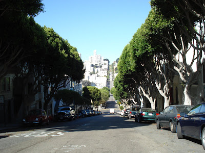 Vom sprichwörtlichen wattigen Weiss, bzw. Vormittagsnebel bisher nichts; stattdessen Hitze, die dazu zwingt, immer wieder die Strasse zu überqueren um auf die Schattenseite zu gelangen. Aber zum Glück wenig Hektik (ausser in Chinatown), viel saubere Luft und eine Stadtarchitektur, die von der Kleinstadt-Häuserzeile über die barocken Fassaden und Giebel im Chinesen Viertel bis zu den Glasfassaden der mordernen Hochhäuser alles umfasst. Das meiste - eben auch die Skyline - hier hat menschliches Mass. Nur wenige Skyscrapers sind höher als die Redwoods im Norden.
