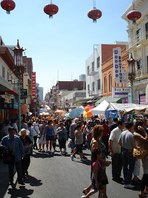 Auf dem Weg zum Golden Gate Park durchqueren wir wiederum Chinatown, jetzt vollgestopft mit Leuten. Volksfest, Einkaufsrummel und Werbung für alle möglichen Organisationen bzw. Weltanschauungen.