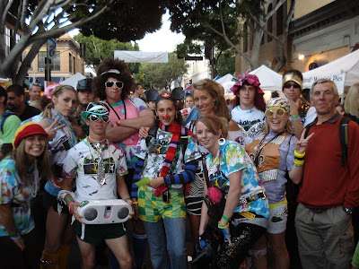 Der Farmers Market in SLO ist ein richtiges Volksfest, aber so viele Leute hätten wir doch nicht erwartet. Jeden Donnerstag wird die Hauptstrasse auf einer Länge von etwa 5 Blocks gesperrt und ein Stand neben dem anderen aufgebaut. Neben einem grossen Angebot an Früchten und Gemüsen locken vor allem die Essstände. Vor einzelnen Grillständen bilden sich lange Schlangen. Die Spare Rips sind dann auch saftig. Gegessen wird auf dem Rand des Trottoirs. Viele Studenten kommen verkleidet zu einem Thema. Etliche kleine Gruppen feiern hier ein bisschen Fasnacht. Von SLO wird denn auch behauptet, es sei eines der letzten richtigen College Towns.