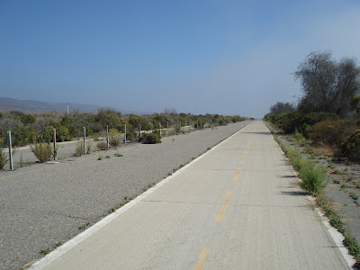 - Der Radweg nach San Clemente wird auf einem ausgemusterten, teilweise überwachsenen Highway geführt; eine lange Strecke auf einem topfebenen weissen Betonband.